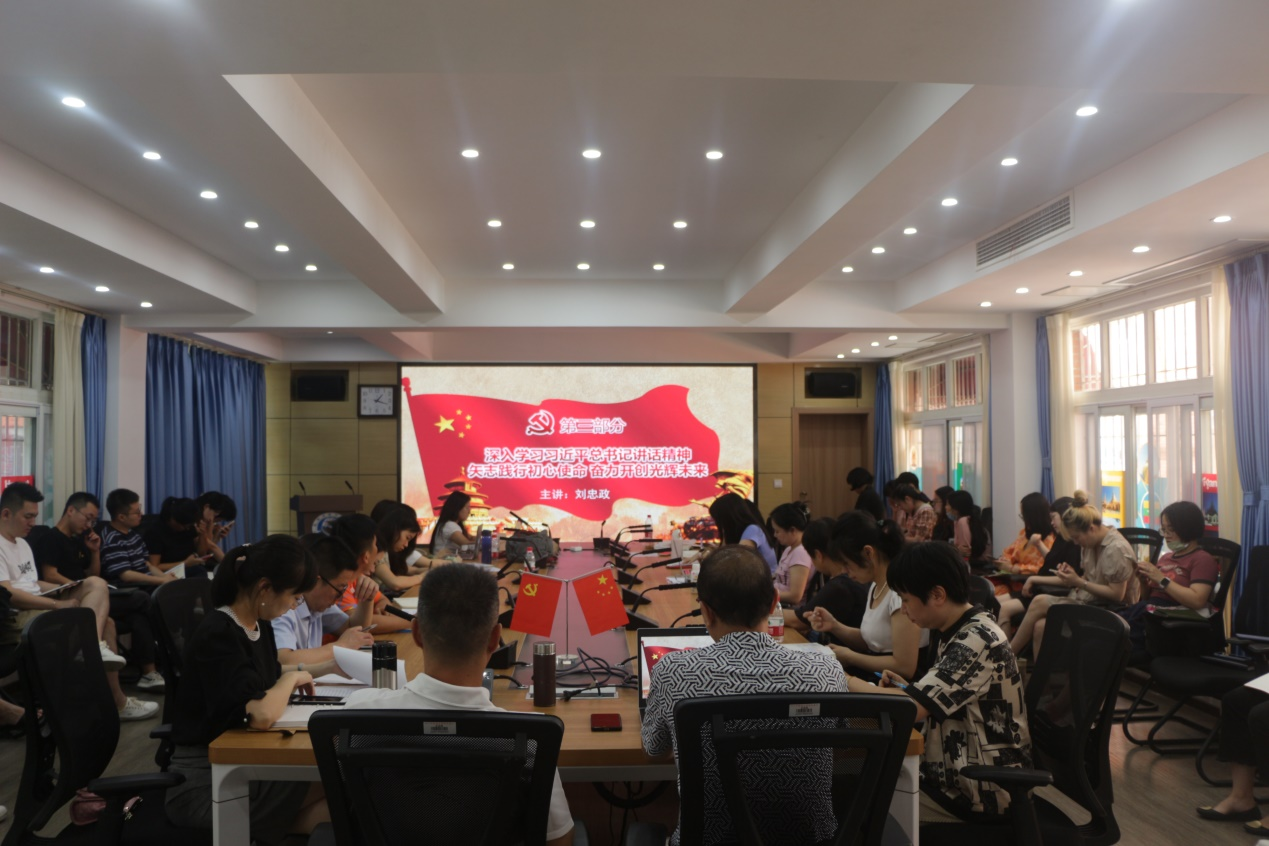 刘忠政院长专题党课宣讲的主题是“深入学习习近平总书记重要讲话精神,矢志践行初心使命,奋力开创光辉未来”。他指出百年党史充分证明,办好中国的事情,关键在党。要深刻领悟中国化马克思主义、深刻领悟党为人民的政治立场、深刻领悟并长期坚持统一战线。