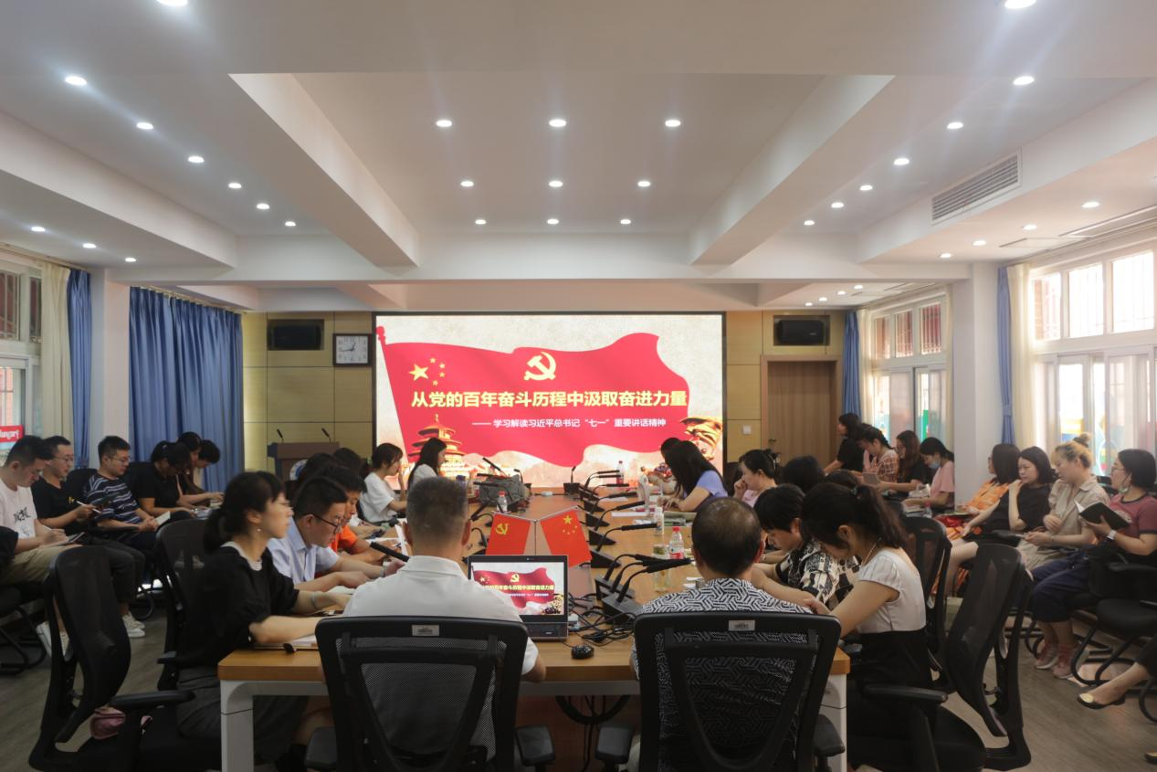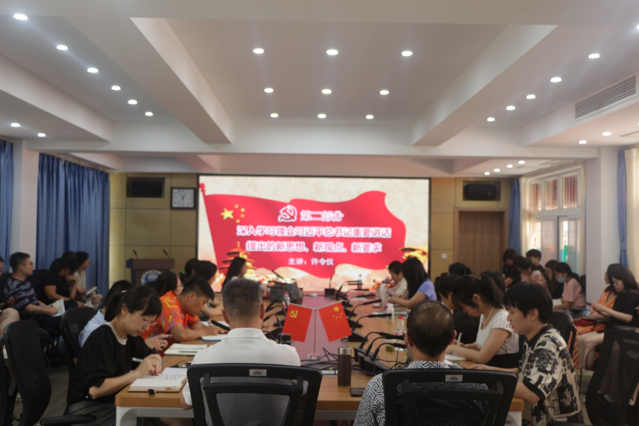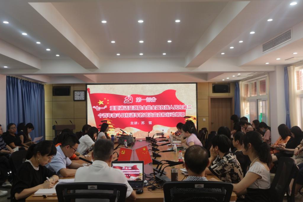 2021年9月24日下午,西方语言文化学院在文轩楼103会议室召开全院教职工大会,学院领导上专题党课,进行习近平总书记“七一”重要讲话精神宣讲。党总支书记苏雪、院长兼党总支副书记刘忠政、党总支副书记许令仪分别为全院教师上专题党课,带领大家深入学习解读习近平总书记“七一”重要讲话精神。