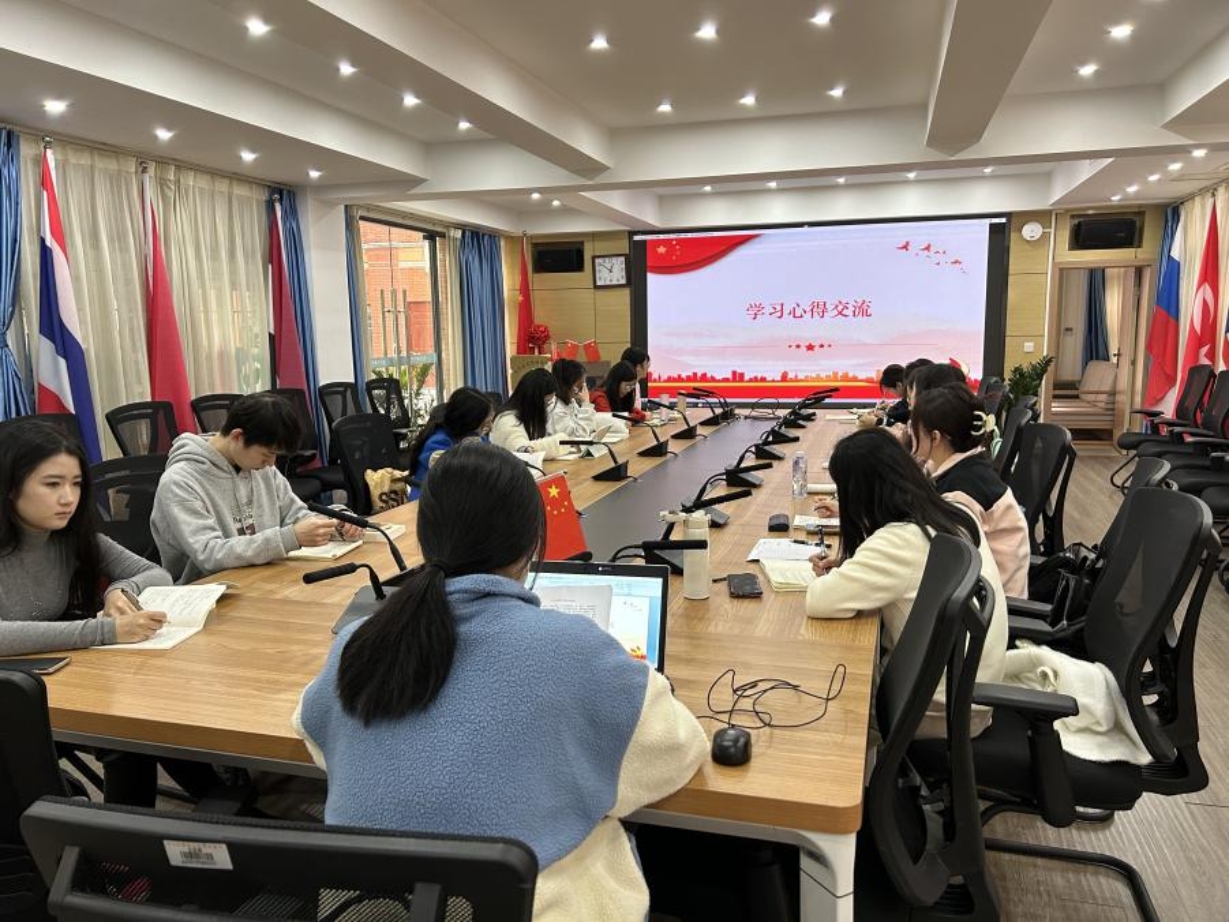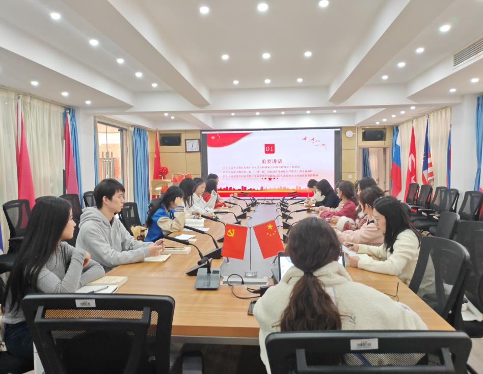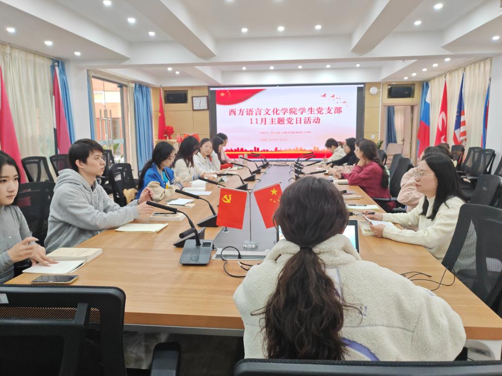 2023年11月23日中午12:30,西方语言文化学院学生党支部在文轩楼103会议室开展了11月主题党日活动。本次党日活动上全体党员同志深入学习了习近平主席在庆祝中华人民共和国成立74周年招待会上的讲话、习近平主席在第三届"一带一路"国际合作高峰论坛开幕式上的主旨演讲、习近平总书记在主持二十届中共中央政治局第九次集体学习时的重要讲话精神、《开辟马克思主义中国化时代化新境界》(《求是》2023年第20期)、习近平主席向首届"一带一路"科技交流大会致贺信和《习近平谈治国理政》第四卷第十四和第十六专题的学习。
