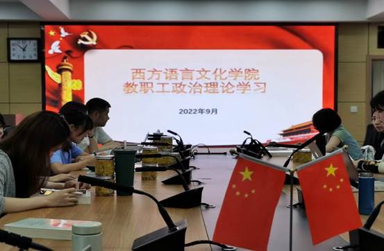 2022 年9月23日中午,西方语言文化学院在文轩楼103会议室开展了9月份教职工政治理论学习。