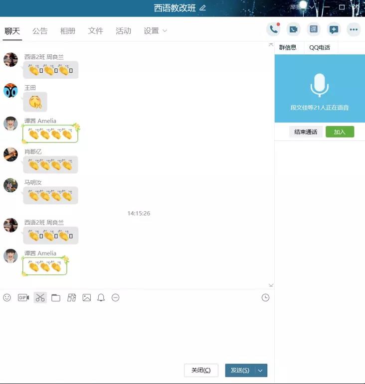 3月25日下午,西葡语系教改班师生以线上语音会议的形式召开《习近平谈治国理政》西语专业“三进”教改班开班仪式。西葡语系党总支书记孙蔓、西葡语系副系主任许令仪、西班牙语教师童亚星、西班牙语教师沈夕力、西班牙语教师王田、2017级辅导员段文佳以及全体教改班学生15人参加此次会议。