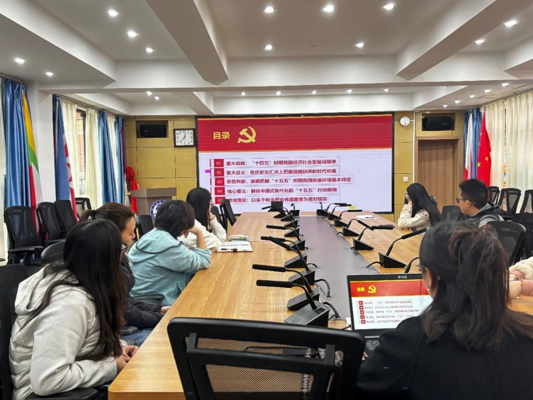 党支部书记廖丹老师还带领大家一起深刻领会了全会精神的关键切入点,把握了“十五五”时期我国发展环境基本特征,学习了中国式现代化的“十五五”行动纲领以及 “十五五”时期经济社会发展的主要目标。全会深刻指出,“十五五”时期在基本实现社会主义现代化进程中具有承前启后的重要地位。实现社会主义现代化是一个阶梯式递进、不断发展进步的历史过程,需要不懈努力、接续奋斗。准确
