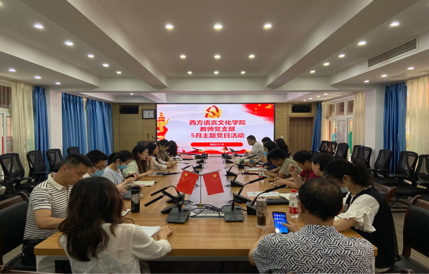 2022年5月13日下午,西方语言文化学院教师党支部组织全体教师党员开展了5月主题党日活动。本次党日活动继续深入学习了党的十九届六中全会精神,跟进学习了习近平总书记最新重要讲话和重要指示精神。