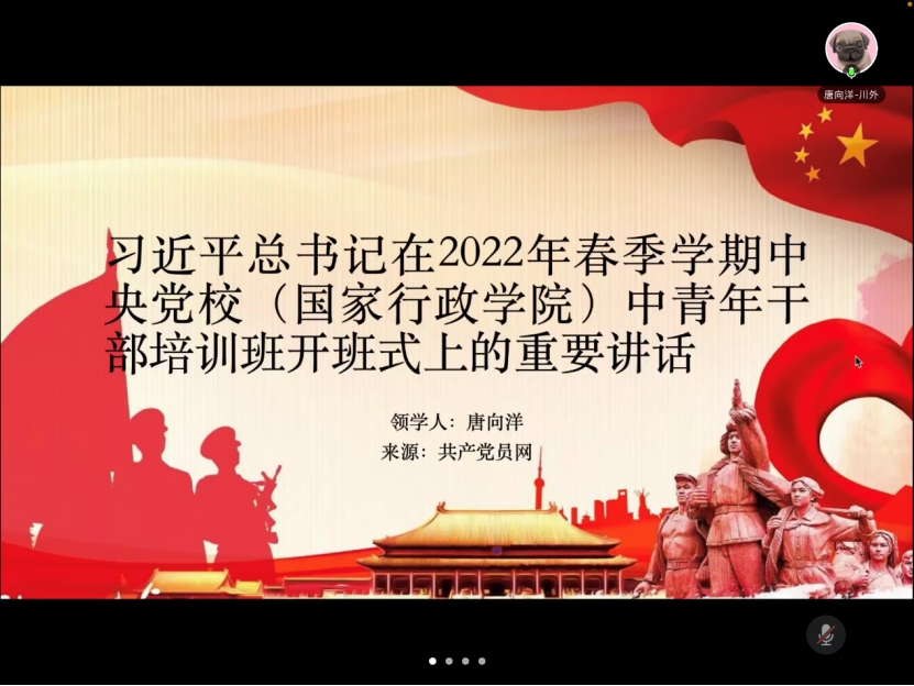 最后,廖丹老师对此次因为疫情而进行的线上活动作了说明,敦促大家线下要加强自学,领会文件精神。呼吁大家在疫情期间,党员同志要积极承担自己的责任,发挥先锋模范作用,做好先进表率。