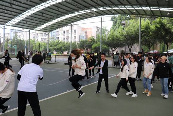 下午14:00,集体跳绳项目开始,伴随着同学们的加油声,运动员们配合默契,每位同学都付出了自己最大的努力,最终以251个,第十名的成绩完成比赛。在同一时间的团体混合足球颠球比赛中,运动健儿们在绿荫场上各显妙招,随着比赛的进行,选手们显得更加得心应手,最终282个,第四名的好成绩完成比赛。混合排球垫球比赛,虽然同学们的成绩不如人意,但是大家尽自己最大的努力,互相配合努力奋斗的精神让在场加油的同学们激动不已。15:10举行的教工集体项目同样精彩,裁判员一声哨响,教职工们都拿出了自己最好的状态,成绩虽然不理想,但是在比赛中,教职工们在比赛中的欢笑感染了大家。教工团体足球射门,排球定点垫球,篮球投篮接力这些比赛,老师们都表现出了极大的热情,助威加油的同学也不甘示弱,为老师们加油打气。