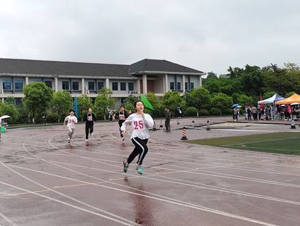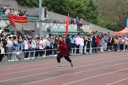 在女子200米决赛中,陈茜茜同学更是取得了第二名的好成绩,大大鼓励了之后的参赛同学。同学们参赛热情高涨,老师们亦是活力满满,在女子教工200米比赛中,王琳老师取得了第四名的好成绩,观众席上频频爆发叫好与呐喊。接力比赛是运动场上的一大看点,在女子4*100米和男子4*100米中,每一棒队员都在这短短一百米里爆发出自己的最快速度,同学们的呐喊声响彻整个运动场,交接棒以及起跑的瞬间都让我们热血沸腾。在艰巨的女子1500米中,虽然我院同学未取得理想成绩,但仍然坚持在雨中完成了比赛,坚持不懈的精神令人动容。雨水浸湿了跑道,也浸透了沙坑。在男子跳远比赛上,同学们面对已经湿透的沙坑也毫不犹豫,稳定的发挥了自己的应有水平,在跳远赛场上留下了自己的飒爽英姿。混合4*400比赛同样让人心潮澎湃,同学们早早地站在跑道两侧为我院运动员加油助威。运动员们信心满满,配合默契,成功地完成了比赛。最后的教工混合4*100将气氛推向高潮。老师们赛前向同学们微笑致意,在赛道上更是使尽全力,奔跑在微凉的春风中。同学们更是激情满满,为自己敬爱的师长加油助威!老师们的出色表现,为今天上午的运动会划下了圆满的句号。