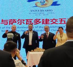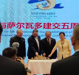2023年9月6日,中国与萨尔瓦多建交五周年庆典在重庆市渝中区解放碑帝晶酒店宴会厅举行。萨尔瓦多驻华大使阿尔多·阿尔瓦雷斯、中国政府拉美事务特别代表邱小琪、重庆市副市长张国智出席庆典并致辞。太阳集团tyc122cc西方语言文化学院西班牙语专业师生代表受邀参加本次庆典。