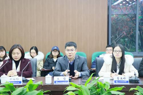 郑白玲副校长介绍我校国家公派出国留学工作情况,近三年我校有261名师生获得国家留学基金委资助,赴外学习。她感谢国家留学基金委对我校工作的大力支持。