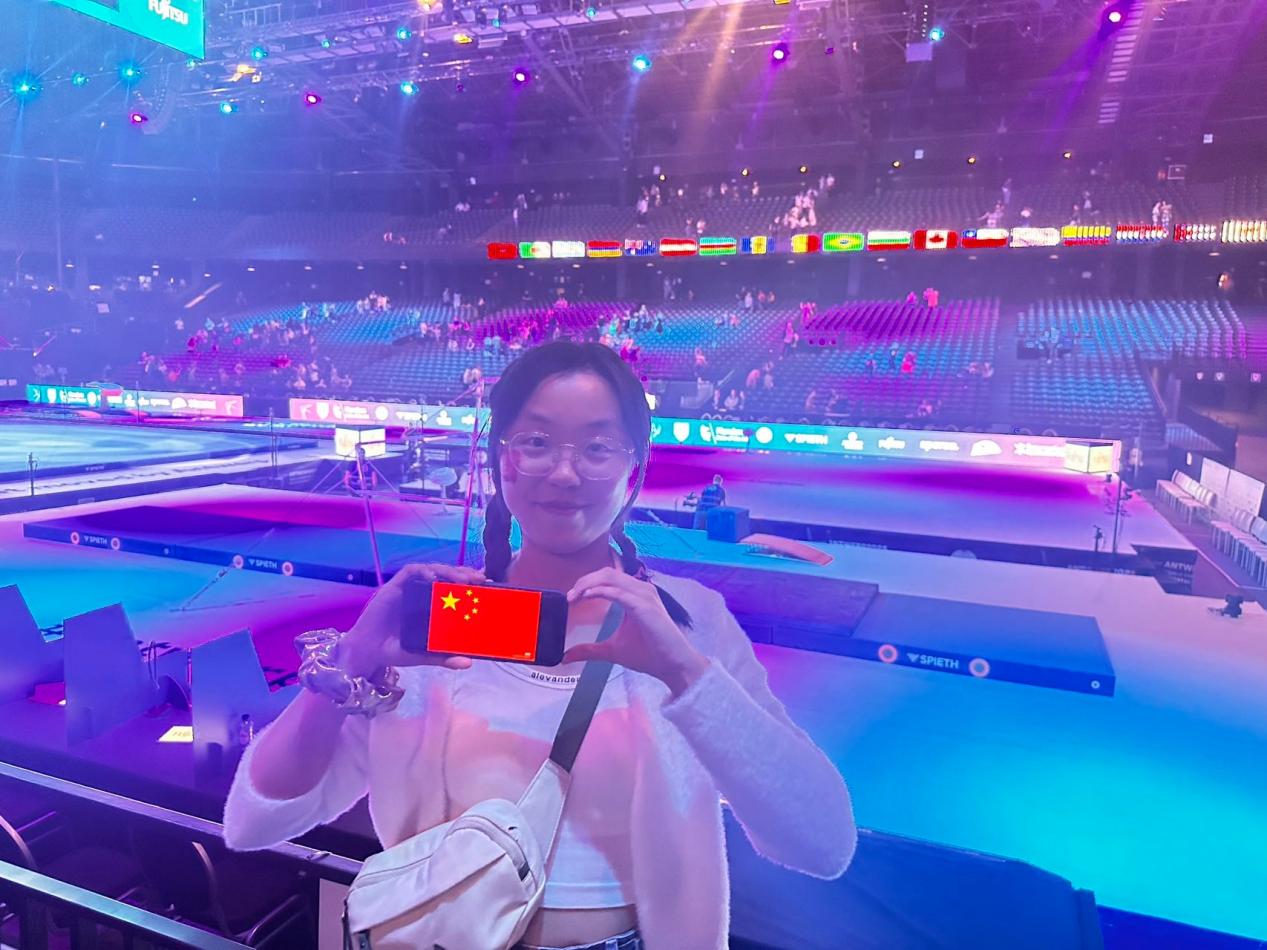 图 8 陈志雯同学在比利时安特卫普体操世锦赛现场