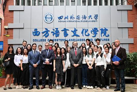 7月3日上午,葡萄牙驻华大使保罗·纳西门托一行来访我校。我校校长董洪川在文轩楼103会见来宾,重庆市人民政府外事办公室、我校国际合作与交流处、西方语言文化学院相关人员参与会谈。
