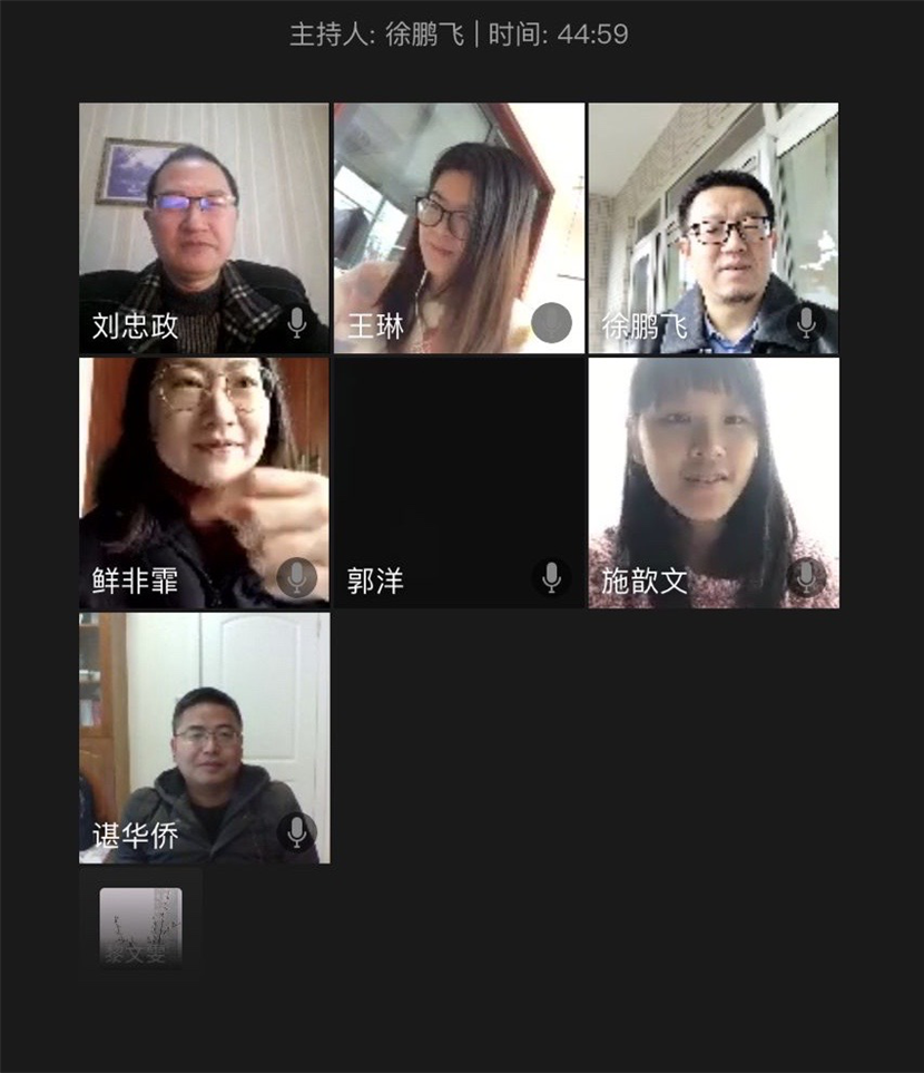 最后,刘忠政院长进行总结强调,已开课专业教研室要抓好线上教学工作,落实“停课不停教、停课不停学”基本要求,遇到问题要及时上报学院和学校,以便及时解决;未开课专业教研室要做好专业建设工作,高质量完成已获批的科研项目;同时,各专业教研室主任要积极推动与对象国学校的交流合作,特别是推动框架协议、执行协议的签订工作;另外,今年计划评职称的老师,要主动了解上学年学校职称评聘的文件,提前准备好材料。在疫情防控的关键时期,希望各位老师紧密团结,在确保自身安全的前提下,圆满完成各项工作。