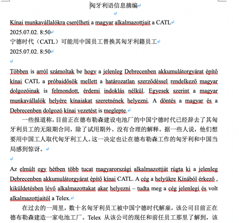 匈牙利语信息摘编示例