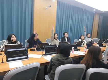 经过多轮比赛,最终陈俊伶同学和赵木子同学进入总决赛:对策回答。此轮比赛设置了两个问题,一个是如何应对华为危机,一个是如何看待台湾问题。两位同学经过准备,阐述自己的观点,由老师和其余同学共同投票选出获胜者。两位同学的表现不相上下,比分打平,进入加时赛。