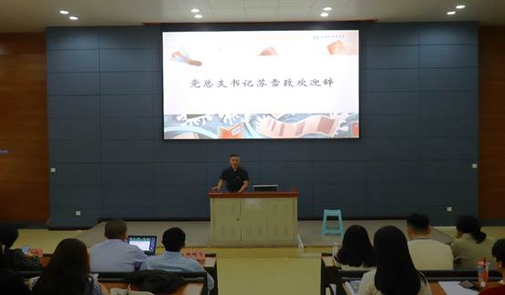 首先,党总支书记苏雪致欢迎辞,对全体新生同学表示热烈的欢迎。随后,他从人生目标、专业学习、大学生活三个方面阐述了新生同学从中学到大学需要做出的重大转变,希望同学们尽快适应新环境,开创新生活,做好学业计划和人生规划,充实圆满地度过四年大学生活。