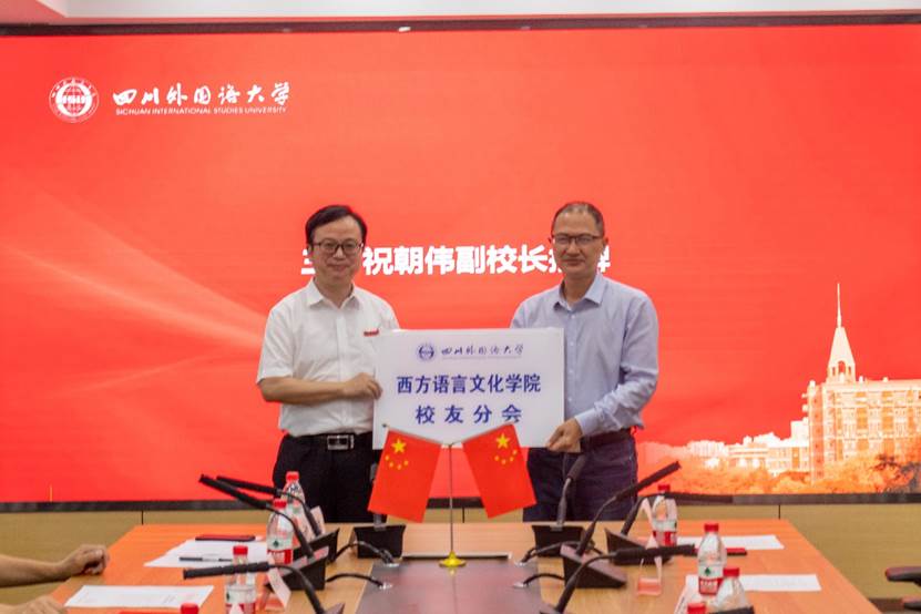 会议第三项议程,太阳集团tyc122cc副校长祝朝伟为西方语言文化学院校友分会授牌。