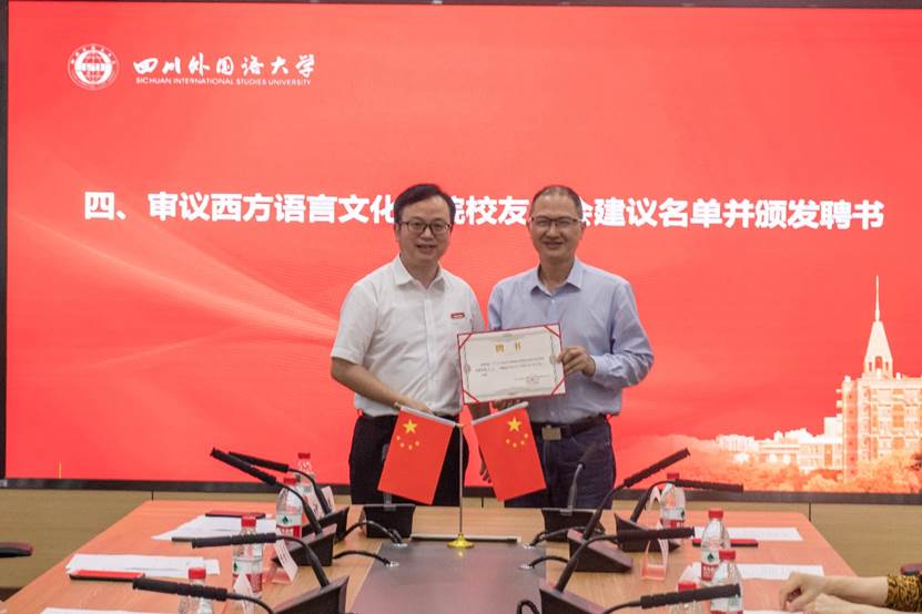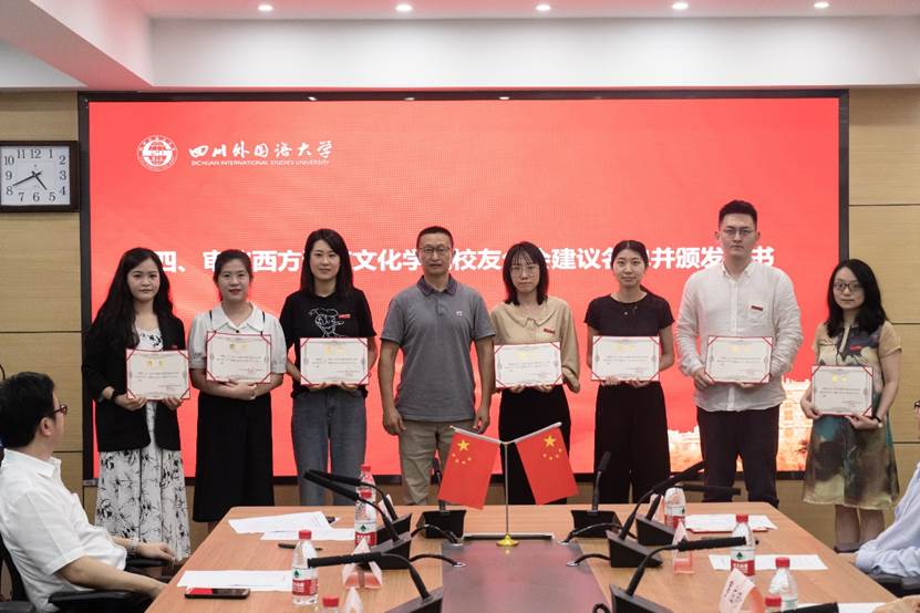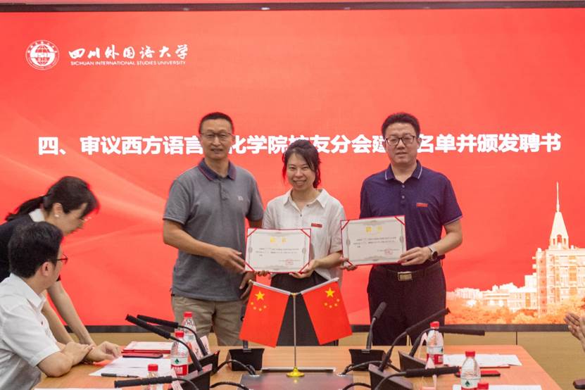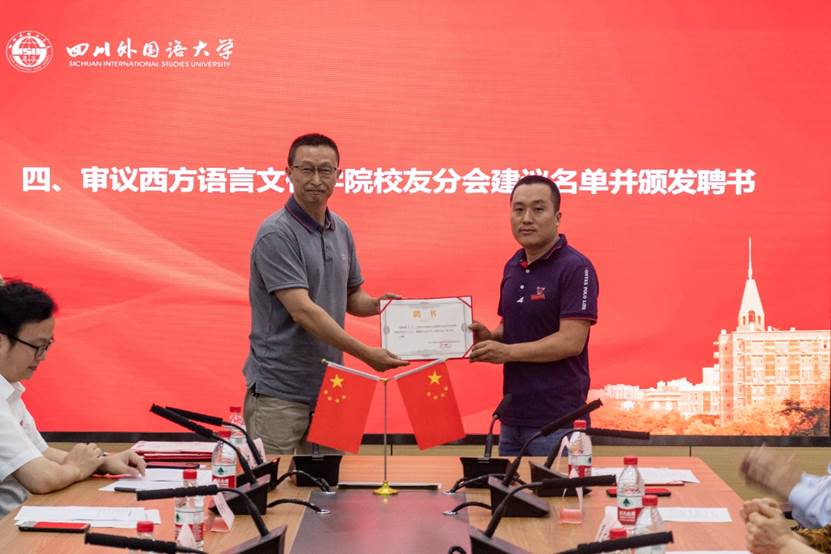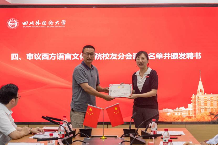 会议第四项议程,审议西方语言文化学院校友分会建议名单并颁发证书。