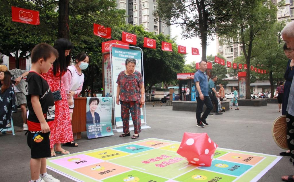 学生党员陈燕加入共青团江津区委组织的志愿者服务,深入基层,来到了江津区圣泉街道办事处,和其他大学生志愿者们一起组织社区适龄留守儿童上课,教孩子们折纸、打太极、读诗歌,和小朋友们一起读党史、品经典、传文化