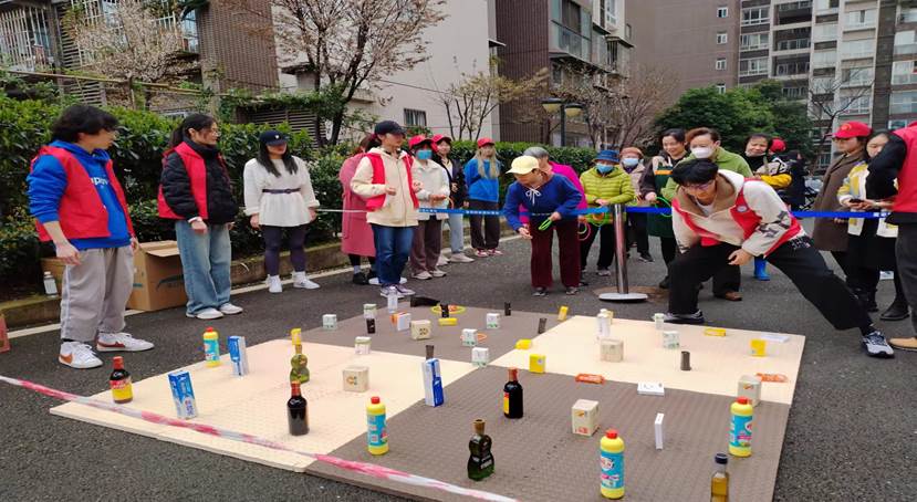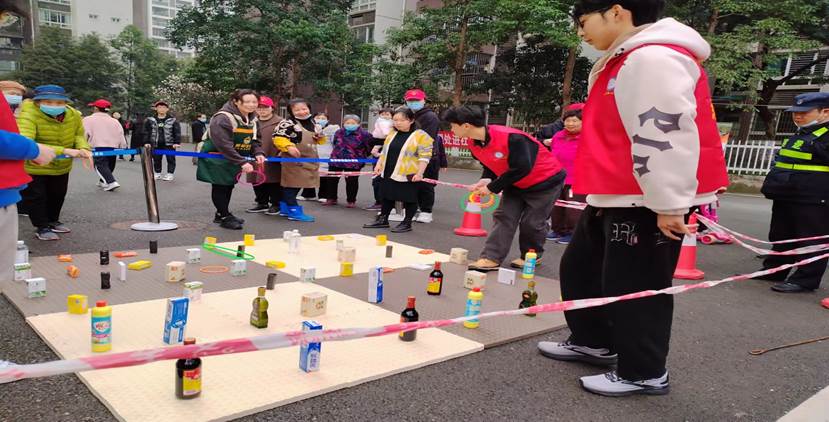 志愿者们分工明确。陈雨檬和赵福茹同学为参加活动的获奖居民分发奖品,胡邓若恒和刘彦祖同学负责补给奖品,程天囿同学为居民们呐喊助威,陈洁同学配合其他同学的工作和拍照记录。每位参加活动的居民都乐在其中。