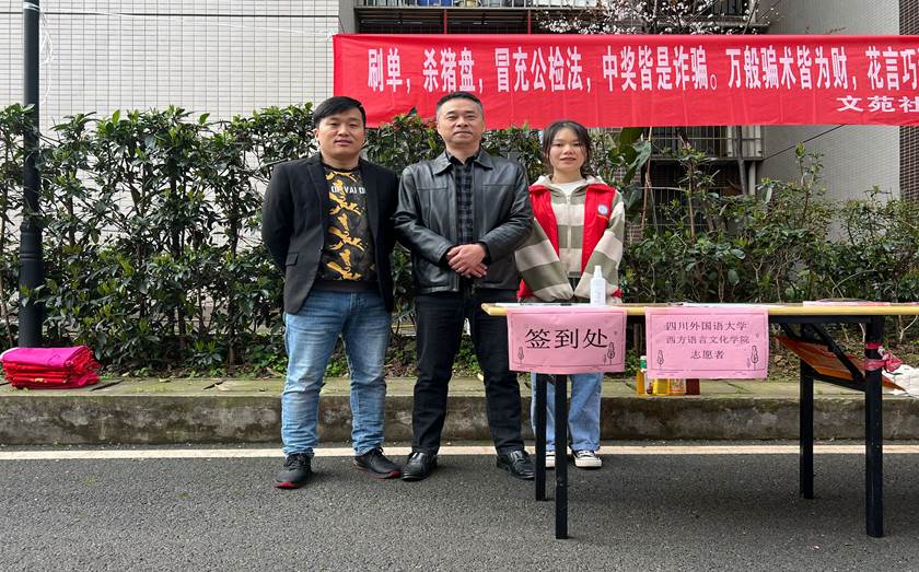 38日下午,西方语言文化学院陈洁、程天囿、刘彦祖、陈雨檬、赵福茹、胡邓若恒六位同学来到学校文苑社区,为社区三八妇女节游园活动开展志愿服务