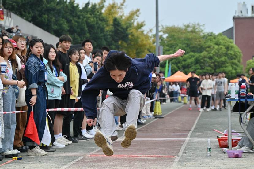 9时,男子三级跳远火热进行。助跑、踏条、腾空、落地,运动员们在空中划过一道美丽的弧线,疾风扬起沙粒,耳畔欢呼骤起,汗水与呐喊都洋溢着青春与恣意。