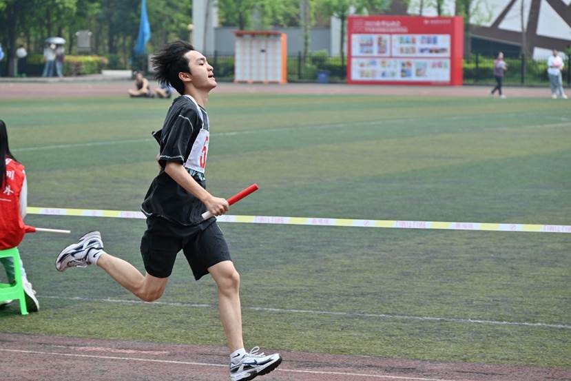 与此同时,学生男子4×100米比赛紧跟其后。一声发令枪响,第一棒选手争相冲出起点,身影化作一支支破空的利箭。交接、追逐、超越,每一棒都发挥出自己最好的水平用尽全力狂奔,是超越自己的信念,四人齐心协力的凝聚力。比赛惊心动魄,你追我赶之间观众热情高涨,惊叫欢呼不断。