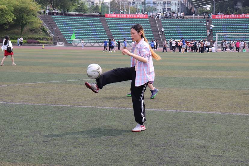 14时30分,混合足球颠球比赛正式开始。屈膝盘腿、摆脚内翻,选手们都沉着冷静地预判球落下的位置,不断调整球在自己脚背上的落脚点,一次次精准地将球向上颠起。最终,西院以150个颠球的成绩荣获此次比赛的第三名。