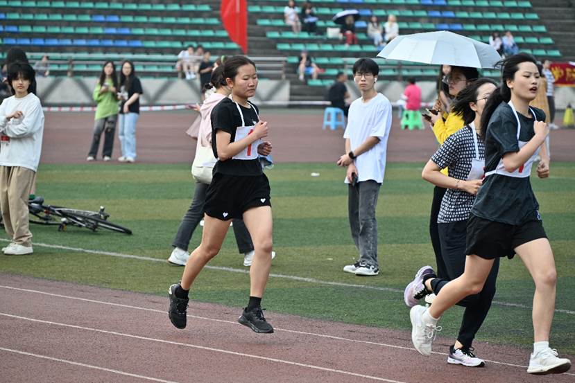 9时50分,女子1500米比赛正式开始。站上赛道的一瞬间,心跳声震颤大地。枪响后,运动员们迈步飞奔,开启这场艰苦的战斗,将近四圈的长跑需要她们和与毅力和体力共处。伴随着同伴的声声加油鼓劲,她们都拼尽全力超越自我,直至最终冲过终点。最终,刘颖同学取得第八名。