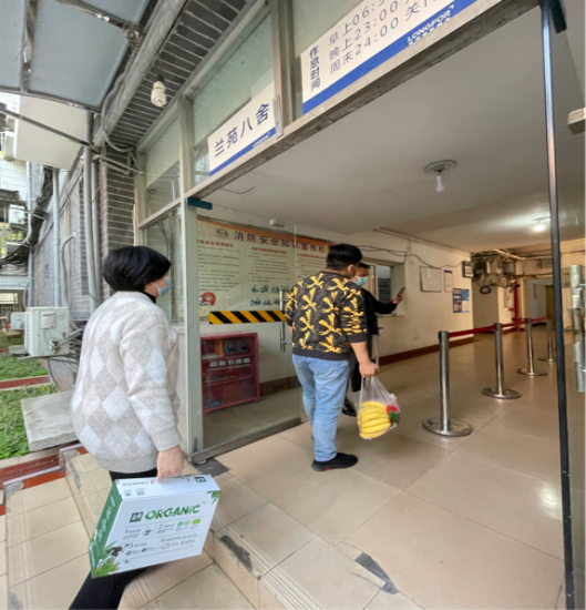 2022年4月7日下午,西方语言文化学院党总支书记苏雪、党总支副书记许令仪、团总支书记兼辅导员李刚和2021级年级长蔡和凝同学前往学校兰苑八舍,看望慰问正在进行一人一案个人健康监测的牛聪烨同学,并请宿舍管理员转送了慰问品。