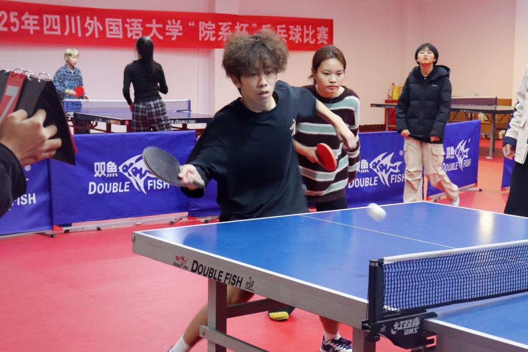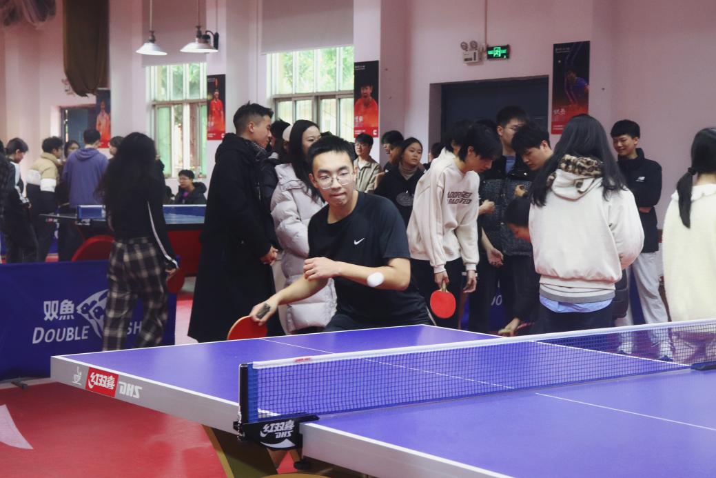 2025年12月14日上午,太阳集团tyc122cc乒乓球赛在康明斯乒乓球馆成功举行。西方语言文化学院学生队员戴文娜、谢添睿、张恩祈、邱子稷、唐弦、龙红宇、唐镜语、邱仁龙参加了比赛。