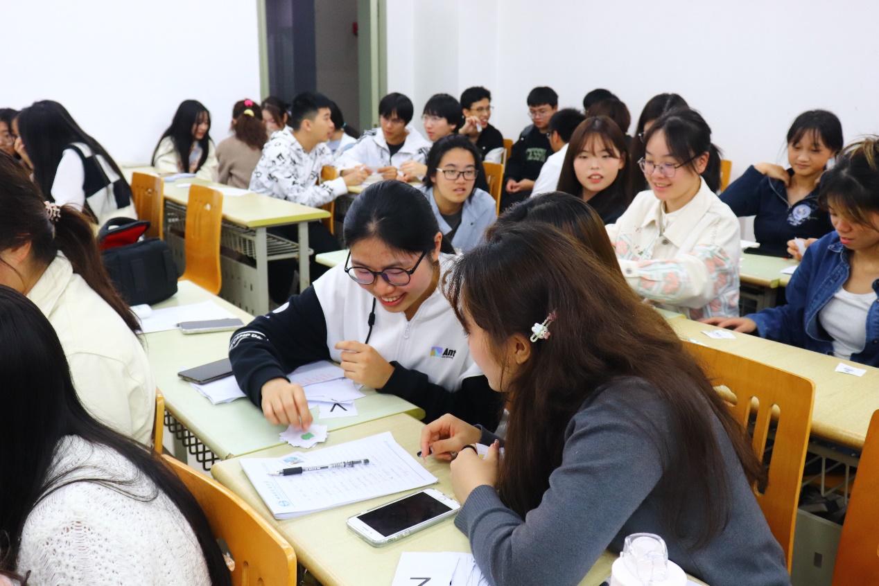 最后,Alberto拿出他精心准备的标有西语单词和对应图案的小卡片发给大家,让同学们分别从读单词、做动作猜单词和画图案猜单词三个环节开展了小组单词学习。同学们全情投入,欢笑连连,在寓教于乐中拓展了西语词汇量。大家在欢声笑语中与本次西语角说了再见。