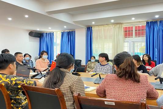 2022年4月13日中午,西方语言文化学院在文轩楼103会议室召开了学生党员和学生干部座谈会。院长刘忠政、党总支书记苏雪、党总支副书记许令仪、副院长温晓静、办公室主任徐鹏飞、团总支书记兼2021级辅导员李刚、2020级辅导员李玲、2018级辅导员廖丹以及全体学生党员、学生干部参加了本次会议。会议由党总支副书记许令仪主持。