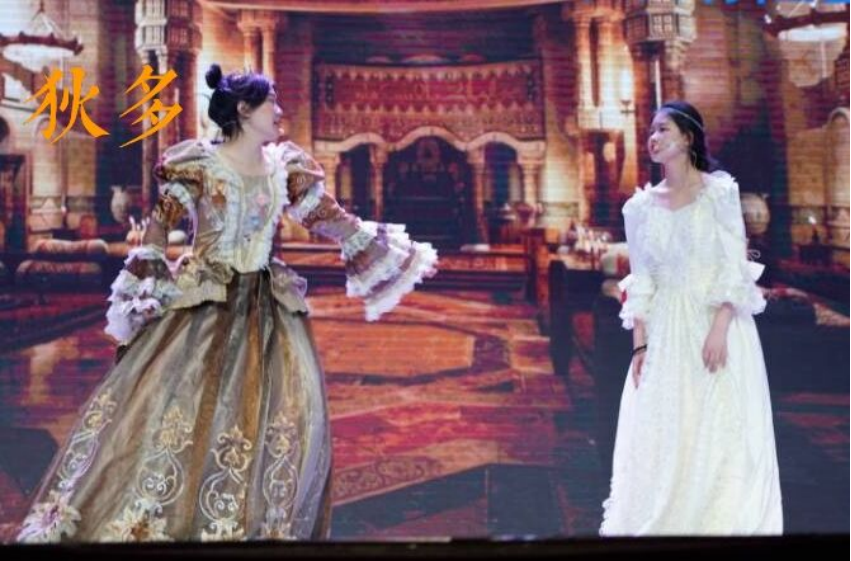 从诡秘梦境到恋人相见,从真相大白到天人永隔。经由西班牙语同学们的演绎将莉迪亚与帕科之间悲惨令人心碎的爱情故事完美诠释。徐益盈同学将莉迪亚那几分困惑难过,几分绝望完美表现了出来,给观众展现出了一个陷入爱情中的少年公主的形象。随着剧情的推进,观众们也被带入了两个恋人之间情感之中,看之心碎,闻之落泪。在女主拥着死去的男主的最后一幕中,台下观众掌声连连,为之喝彩。