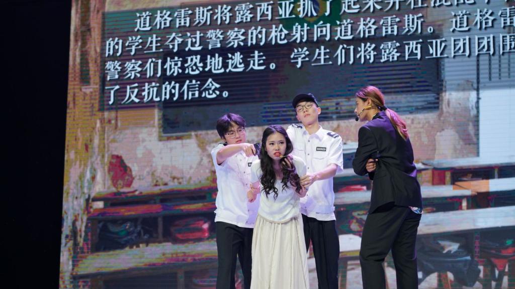 葡萄牙语的同学们以精湛的演技,将巴西社会底层人民由不断忍让到勇于站起反抗黑帮势力的情感交织完美演绎,其中女主刘欣瑶同学更是将那几分善良,几分坚毅演绎得淋漓尽致,最终荣获2021年外语晚会“年度最佳女演员”。紧张的剧情引得台下惊呼连连,得到了所有观众和评委老师的认可。