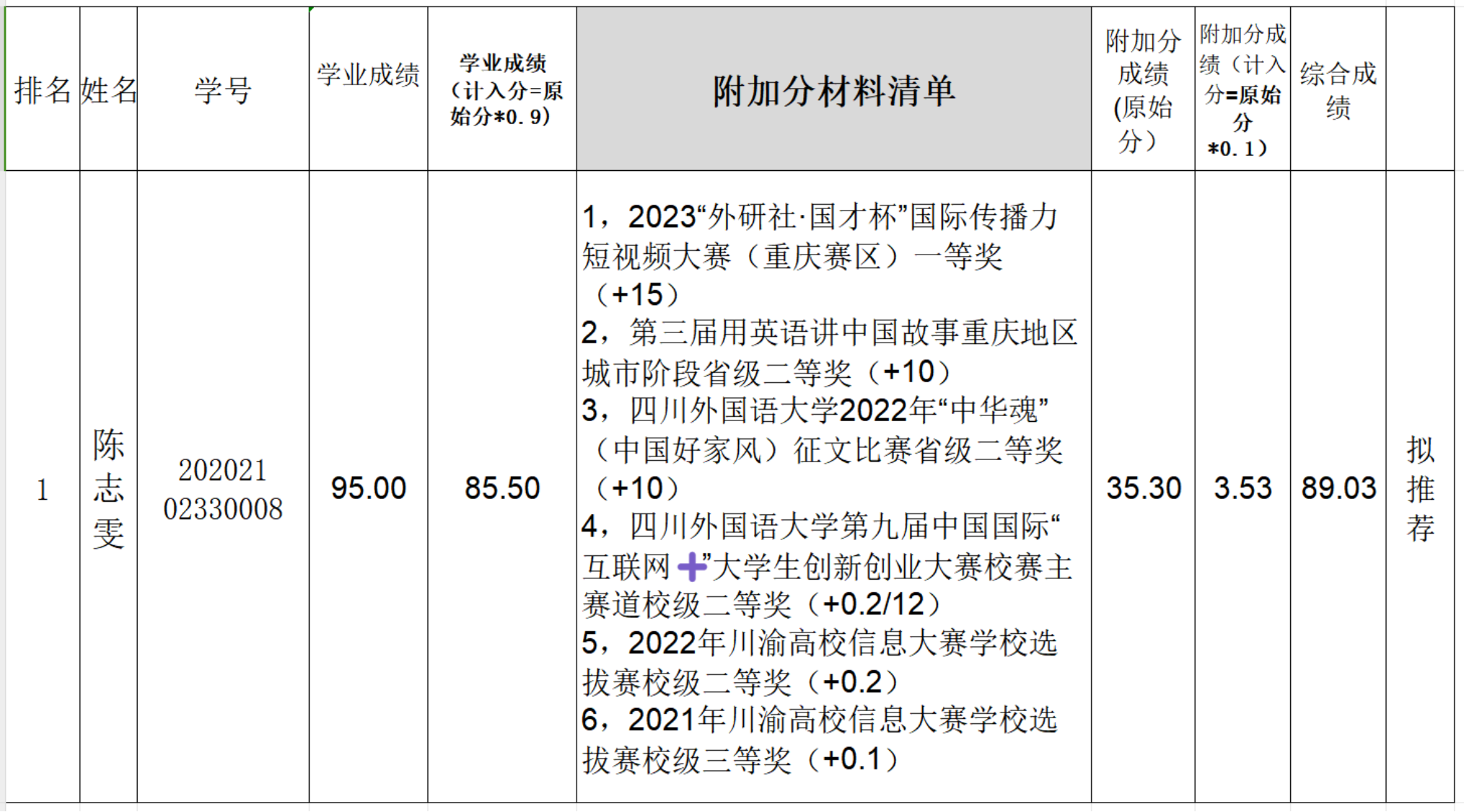 学校分配给我院推荐名额6人(西班牙语3人、意大利语1人、葡萄牙语1人、波兰语1人)。学院在学校分配名额基础上按照1:1.5的比例,并结合各专业学生人数比例,进行差额推荐,差额推荐名额为8人(西班牙语4人、意大利语2人、葡萄牙语1人、波兰语1人)。