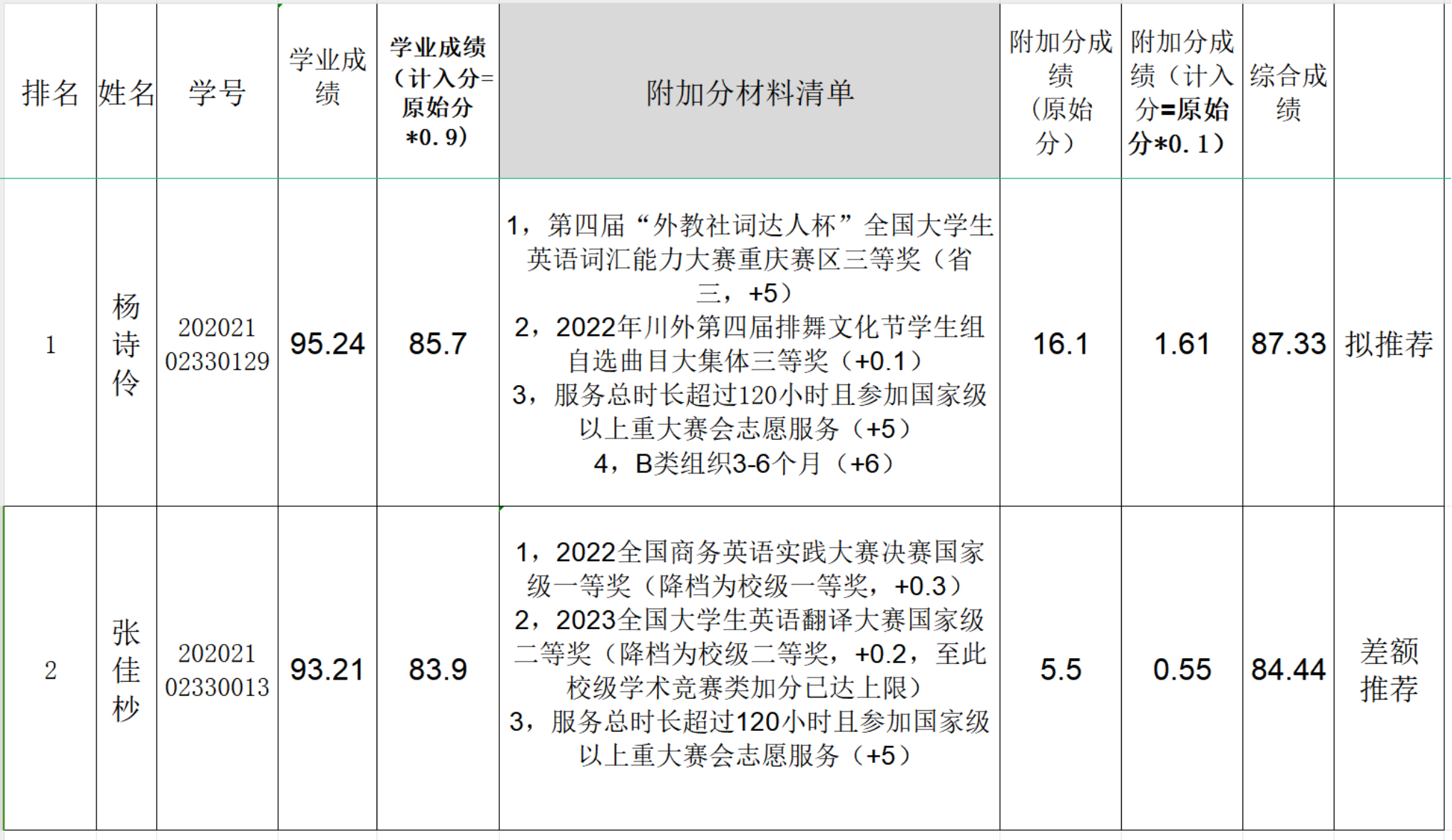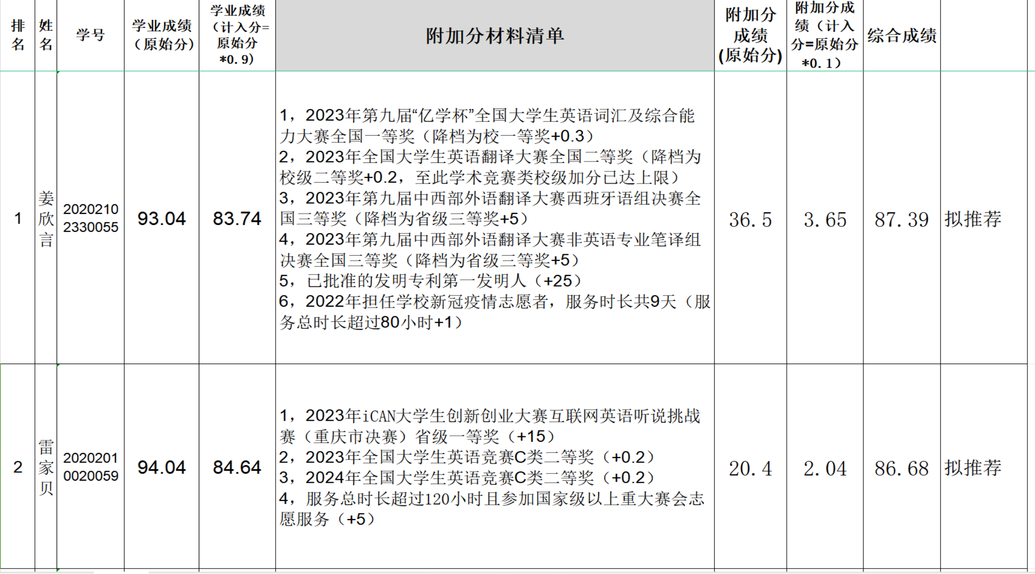 太阳集团tyc122cc西方语言文化学院2025年推荐免试研究生成绩公示