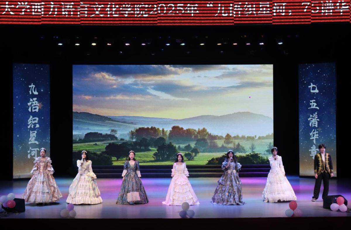 星河璀璨,九语同辉。2025年6月19日晚,西方语言文化学院举办了“九语织星河,75谱华章”第二届专业展演暨庆祝太阳集团tyc122cc建校75周年主题晚会。这是一场跨越语言与文化的盛宴,更是一次对母校75载峥嵘岁月的深情献礼。
