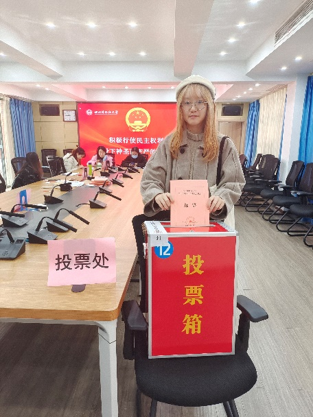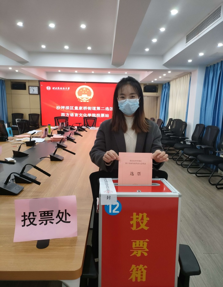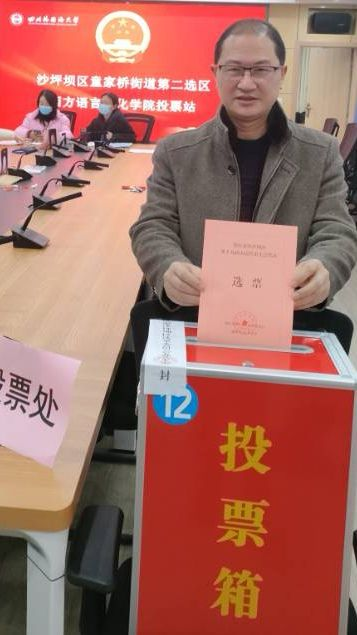人大代表人民选,选好代表为人民。2021年12月3日是沙坪坝区选举区镇人大代表的投票选举日。西方语言文化学院700名师生选民络绎不绝、井然有序地来到沙坪坝区童家桥街道第二选区西方语言文化学院投票站,投下了自己神圣而庄严的一票。