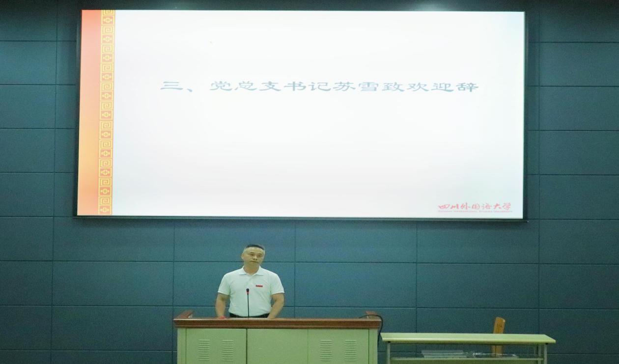党总支书记苏雪在欢迎辞中,代表全院教职员工向全体新生表示了热烈的欢迎,向学生家长们致以诚挚的问候。接着他介绍了学院“开学第一课”及入学教育的系列内容,希望新生同学们尽快转变身份,适应大学学习和生活,珍惜时光,把握机遇,在大学期间收获丰富的成果。