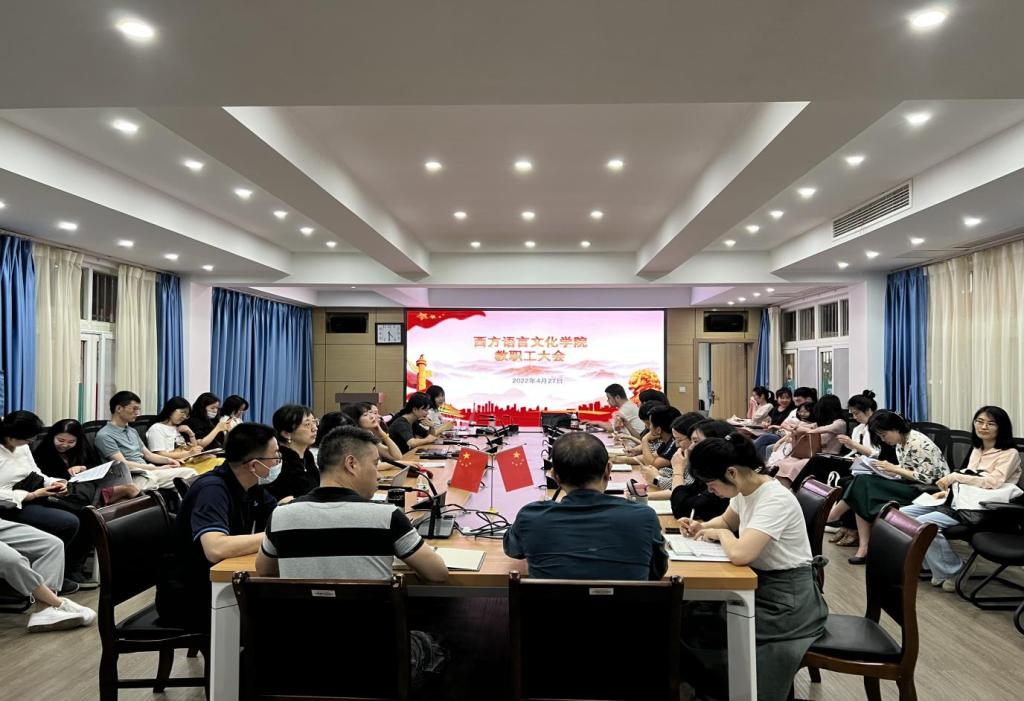 2022年4月27日下午,我院在文轩楼103会议室召开了全体教职工大会,并进行政治理论学习。
