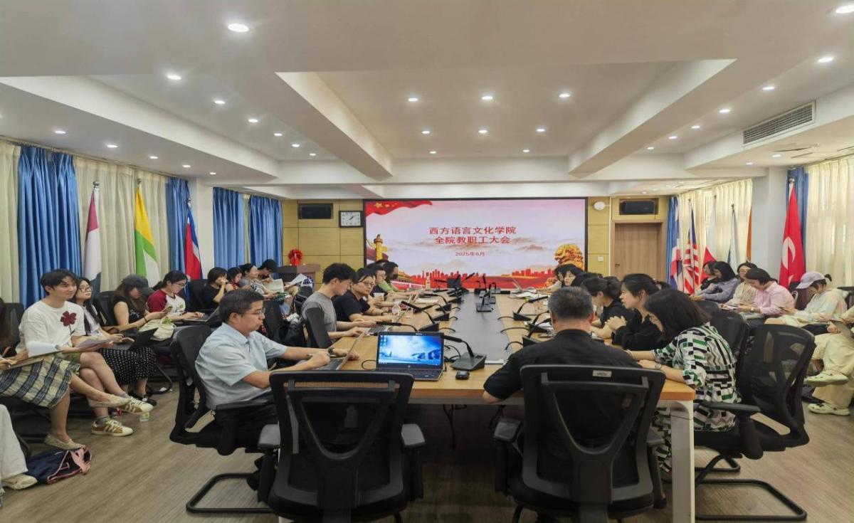 2025年6月27日中午,西方语言文化学院在文轩楼103会议室召开了全体教职工大会。