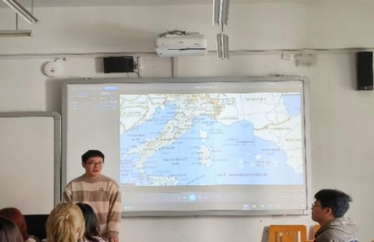 在热身环节,汪晓宇老师先给同学们分发乌克兰地图,以便加深同学们对乌克兰各地风土人情的印象。比赛正式开始后,同学们依次上台演讲,充分展现出了外语人的风采和专业知识功底。