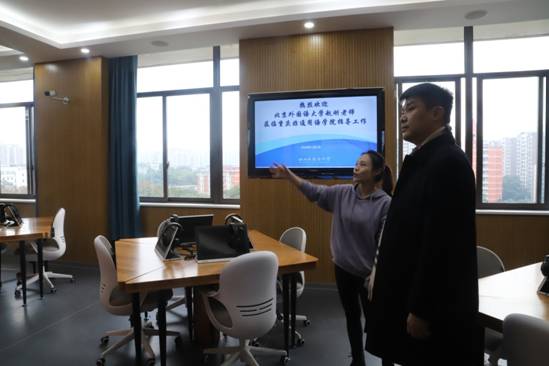 白纯老师带领赵刚教授参观我校非通用语智慧实验室