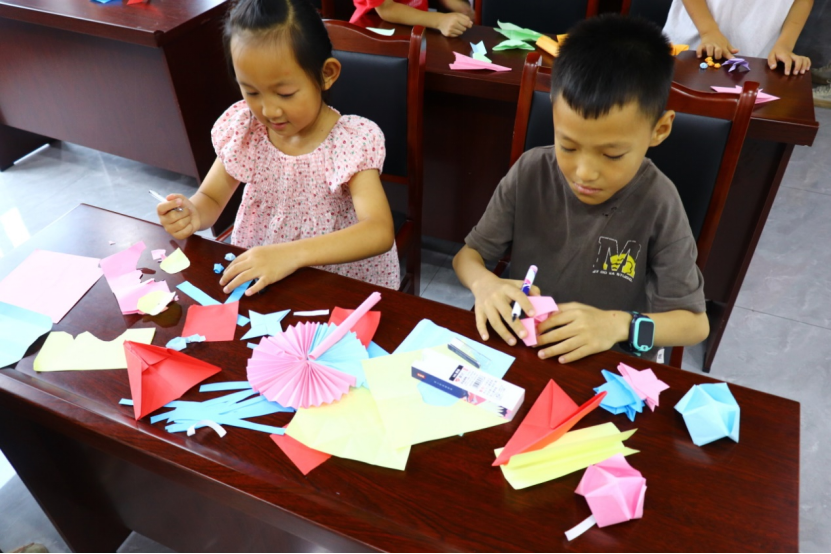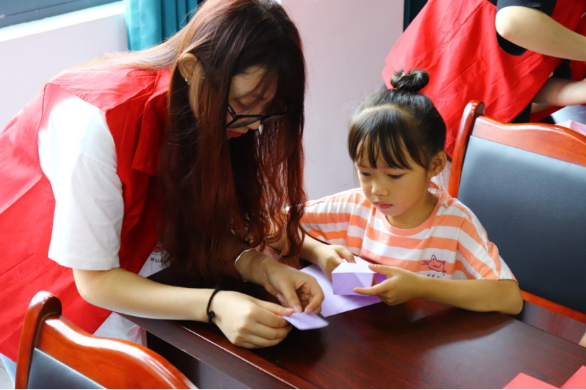03手工互动:陶行知先生说:“我们发现了儿童有创造力,认识了儿童有创造力,就须进一步把儿童的创造力解放出来。”在志愿者的带领下,孩子们发挥天马行空的想象,用折纸创造属于自己的“小发明”。
