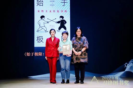 陈英教授(右)和祝羽捷女士(左)为年度刀锋好书《始于极限》颁奖