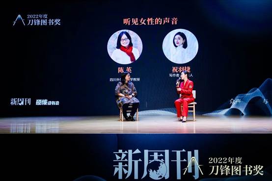 陈英教授(左)和作家祝羽捷(右)在颁奖仪式上对谈
