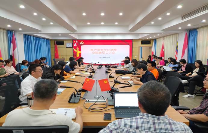 2023年6月16日中午,西方语言文化学院在文轩楼103会议室举行了全院教职工大会。
