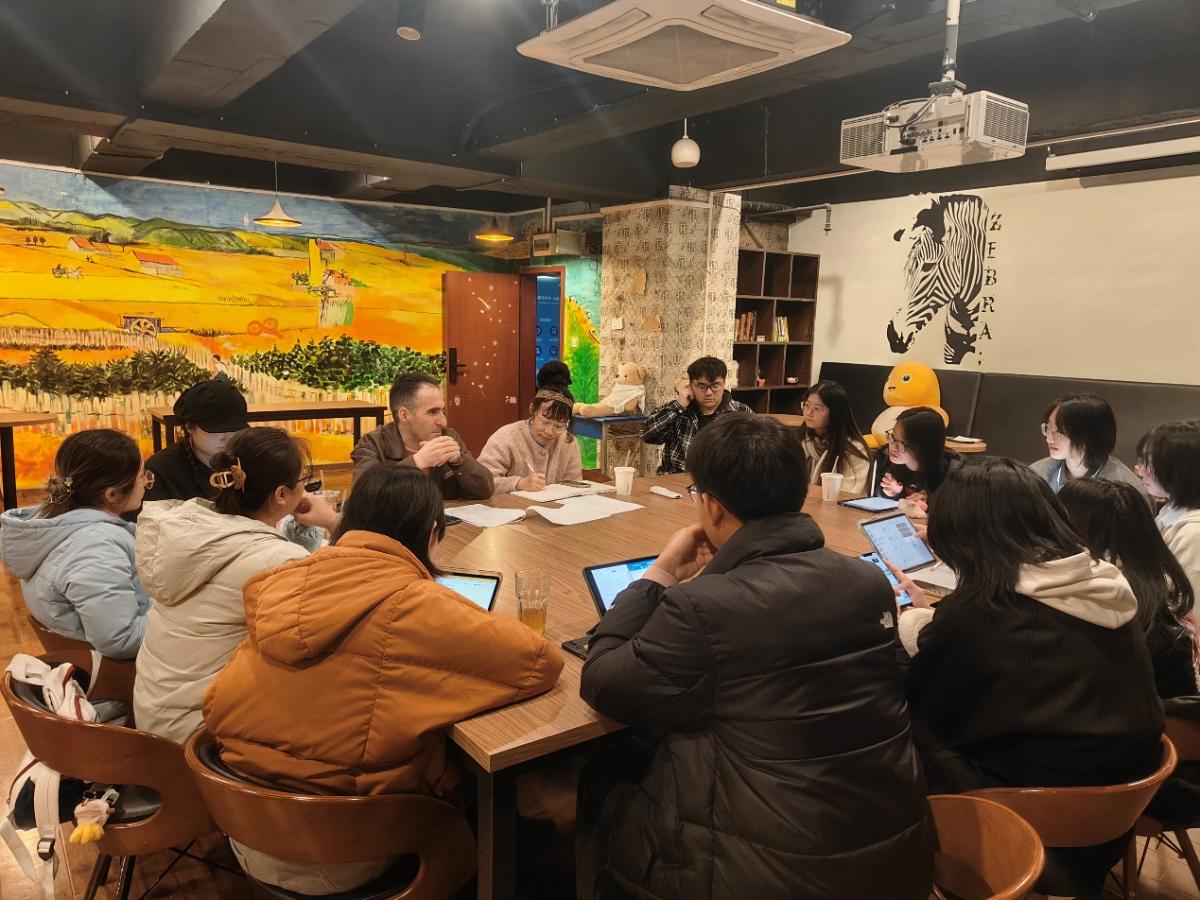 2024年12月4日,外教Diusbel和同学们再聚于时光若刻咖啡馆。听着淋淋的雨声,共同回溯历史的足迹,品味宋代词人苏轼的千古绝唱——《水调歌头》,感受其中的万千思绪。
