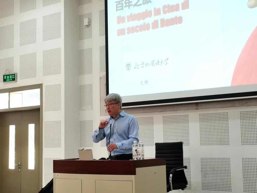讲座伊始,文铮教授以幽默轻松的语言讲述了中意两国关系发展和演变的历史,并以此为切入点,阐述了但丁在意大利语言文化和中意文化交流方面做出的巨大贡献。而后,文铮教授又介绍了《神曲》和《新生》两部作品的内容和核心思想。在这之中,教授着重介绍了《神曲》在中国的传播和它对中国文化发展做出的贡献,让学生了解到了中意文化相互交流、相互促进的繁荣历史。讲座最后,文铮教授热情地回答了学生提出的问题,并给学生提出了关于研究但丁文化的宝贵意见。