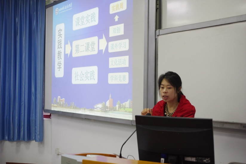 比赛过程中,各位参赛选手各显其能:有的同学向大家展示了中国优秀企业家的生平;有的同学准备了精致的PPT,为现场观众带来了图文并茂的精彩演讲;更有同学在演讲过程中合理利用了板书,增加了演讲的说服力。选手们在讲台上沉稳应对,自信交流,获得了评委老师的频频赞赏。
