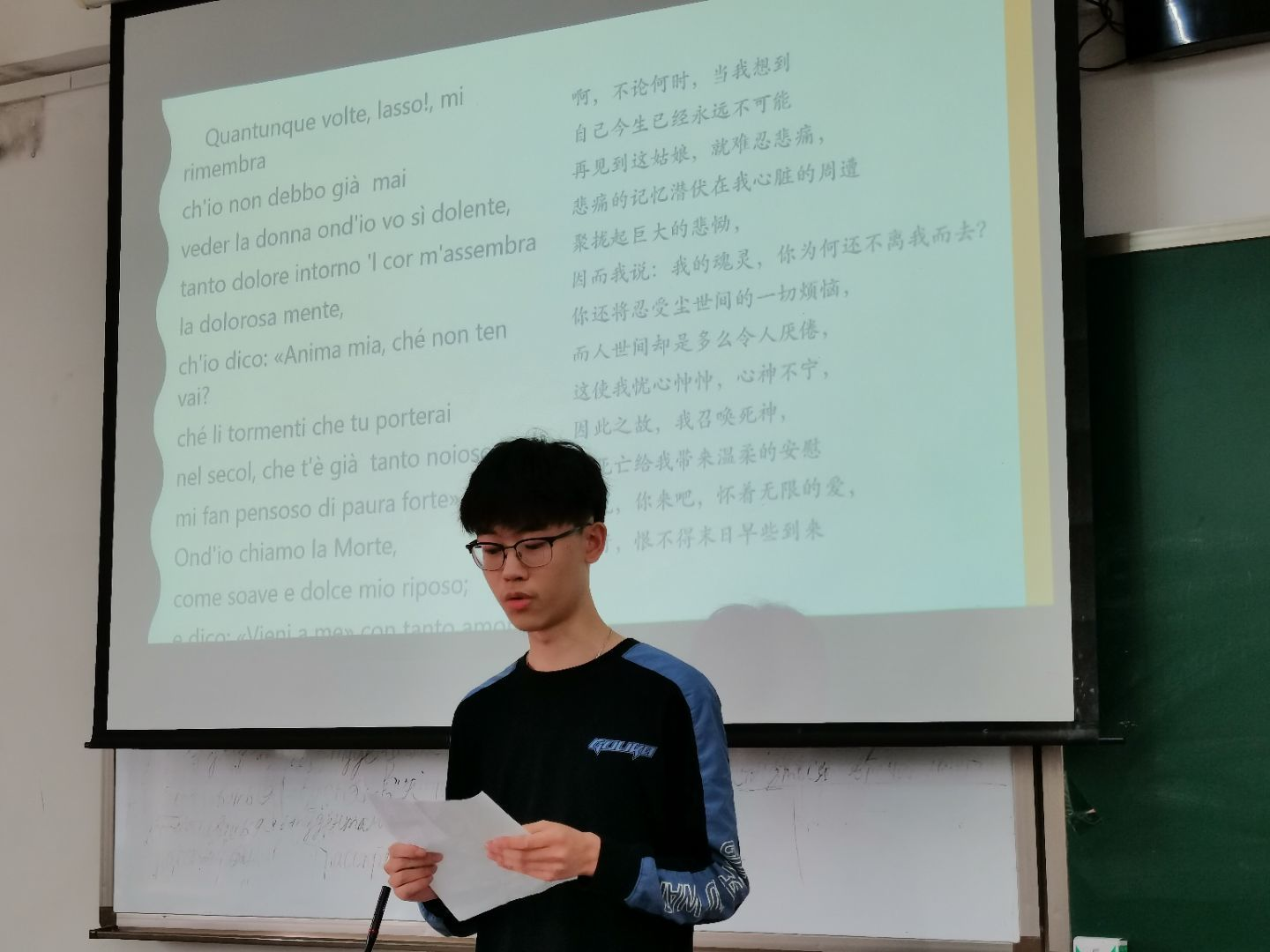 时值但丁诞辰700周年之际,同学们通过朗诵《新生》诗集不仅深刻缅怀了这位伟大的文学家,同时也进一步了解、感受到了意大利文学绚烂的诗词文化。